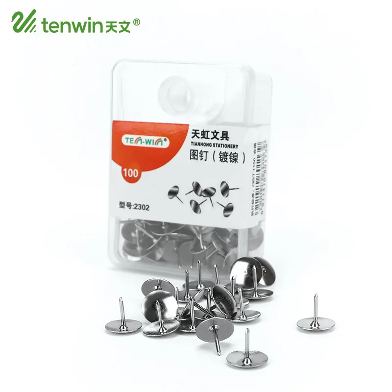 Name: Chinchetas metálicas plateadas de corcho para dibujo, pines de papelería para mapa, herramientas de encuadernación, suministros escolares y de oficina, 100 unids/lote